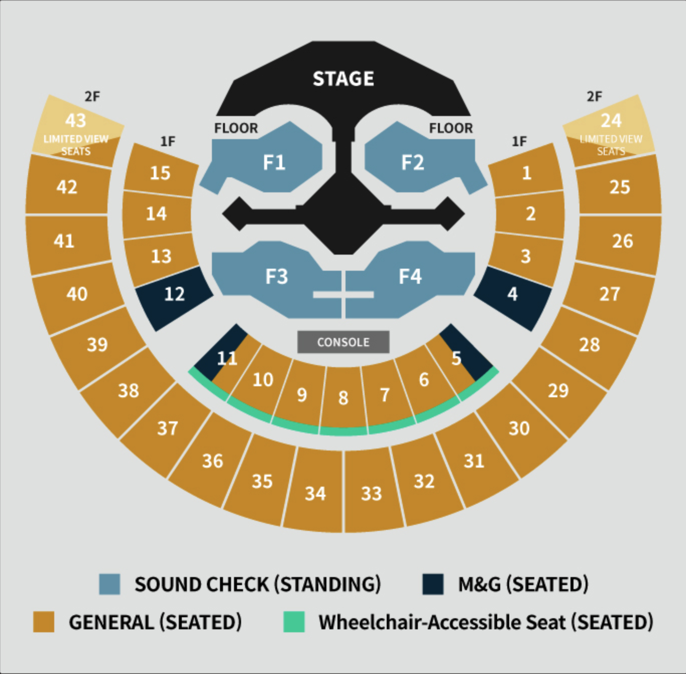 The venue operates with both a STANDING section (Floor) and SEATED sections (1st floor and 2nd floor tiered seating). Please check your ticket for your seat section.