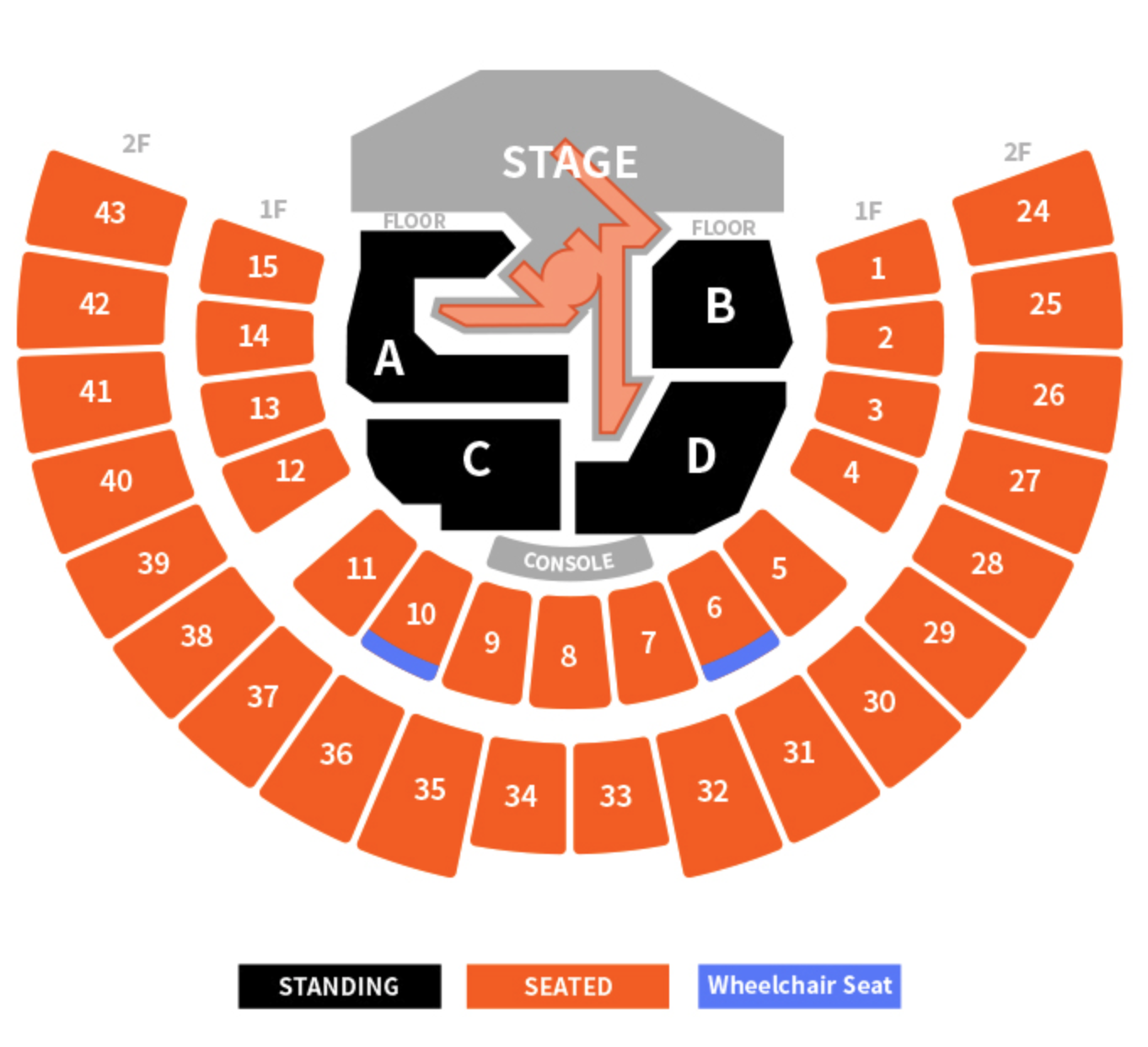 The venue operates with both a STANDING section (Floor) and SEATED sections (1st floor and 2nd floor tiered seating). Please check your ticket for your seat section.