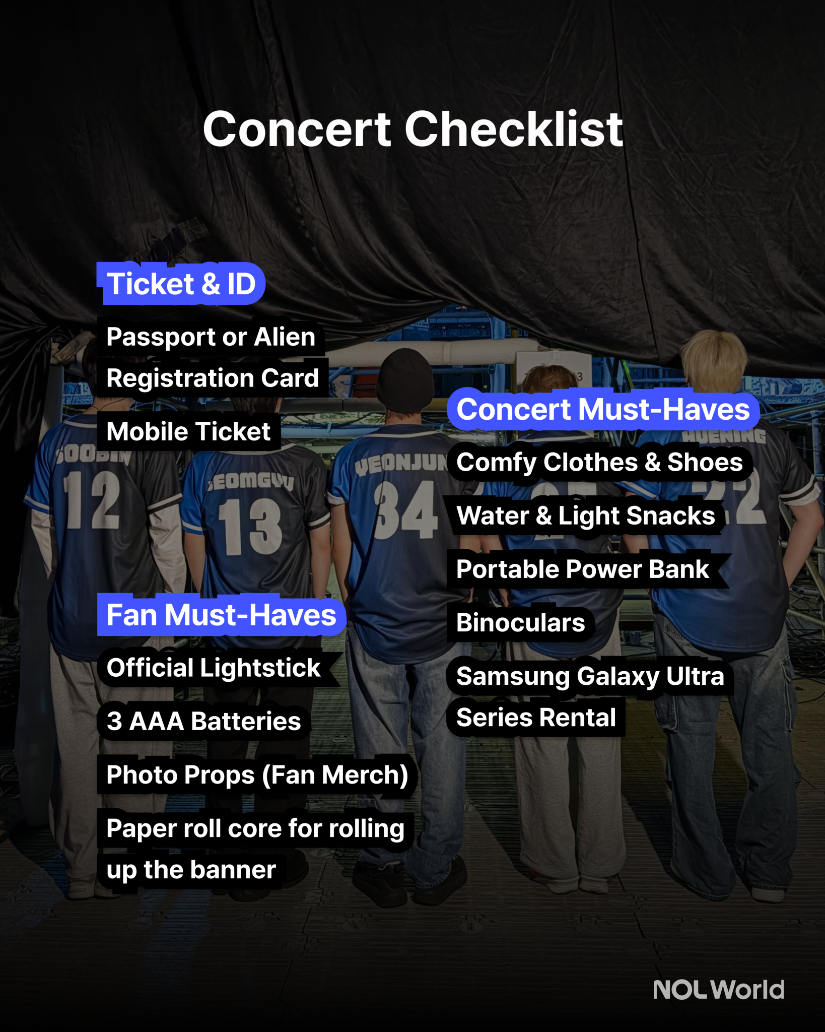 Don’t forget to bring your ID, your official light stick, and extra batteries. For memorable photos, bring some fan merch like photocards or plushies. If your seat is farther from the stage, a pair of binoculars will come in handy, too. With this checklist, you’ll be all set for the concert! ✨