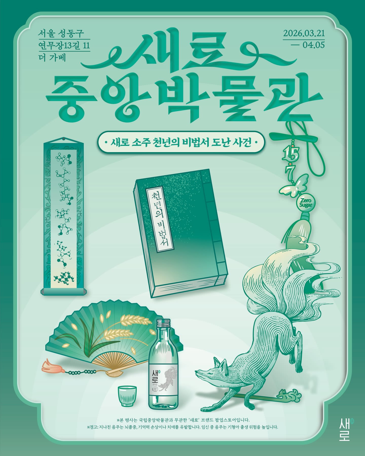 Do you know 'soju,' Korea's representative alcoholic beverage? 'Saero,' a soju brand especially beloved by Korea's younger generation, is opening a pop-up store to celebrate its renewed launch. With a museum concept that reveals the secret recipes of Saero Soju's millennium, it introduces meaningful items and looks back at Saero Soju's history. If you want to truly get to know Korean soju on this trip to Korea, be sure to visit. We invite you to a mysterious museum unfolding in the heart of Seongsu! 📍 The Gabe Seongsu 🗓️ March 21 (Sat) - April 5 (Sun), 2026