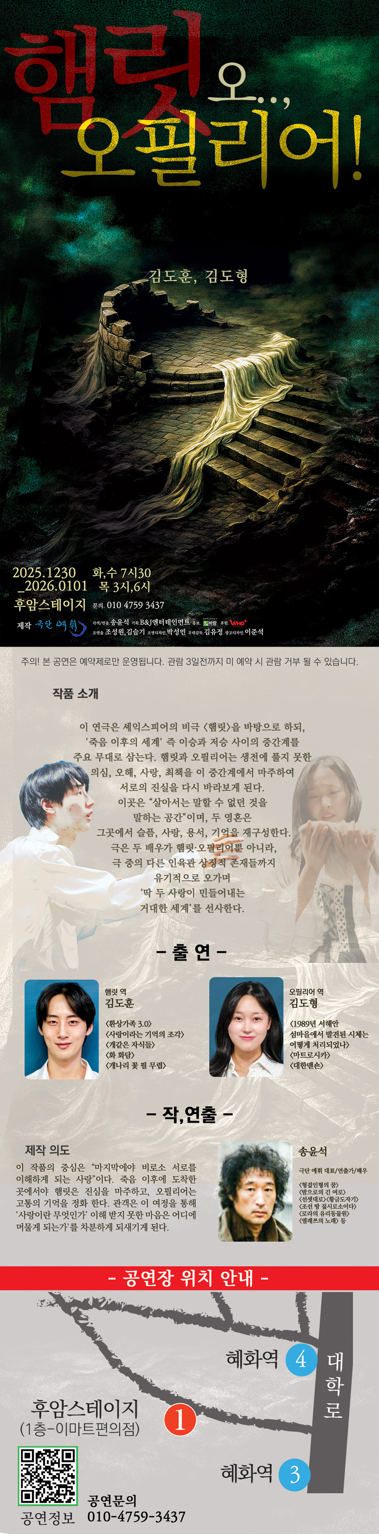 '극단 예휘'의 <햄릿! 오...오필리어!>는 추리 스릴러로 (주)후플러스 Who+의 “창작 공간 담금질 프로젝트 < 예술에 담그다 >” 에 선정되어 공동제작, 기획되는 작품입니다.