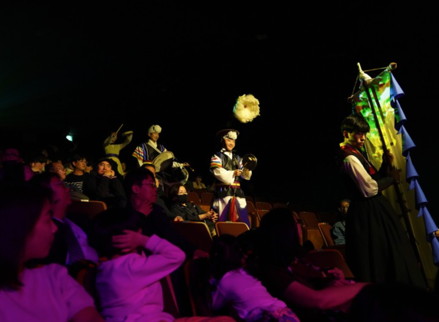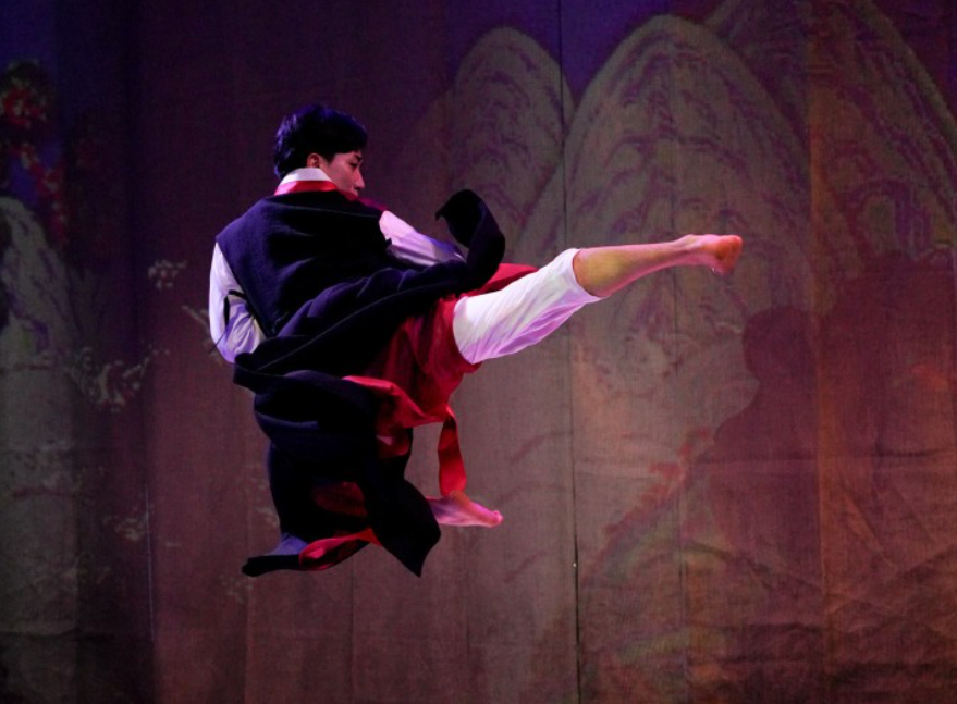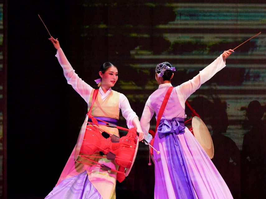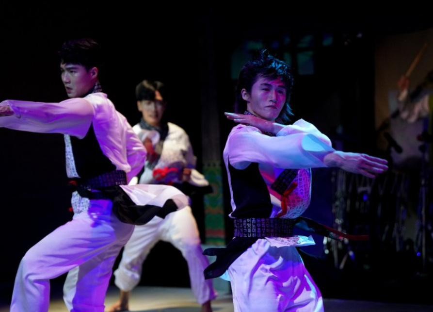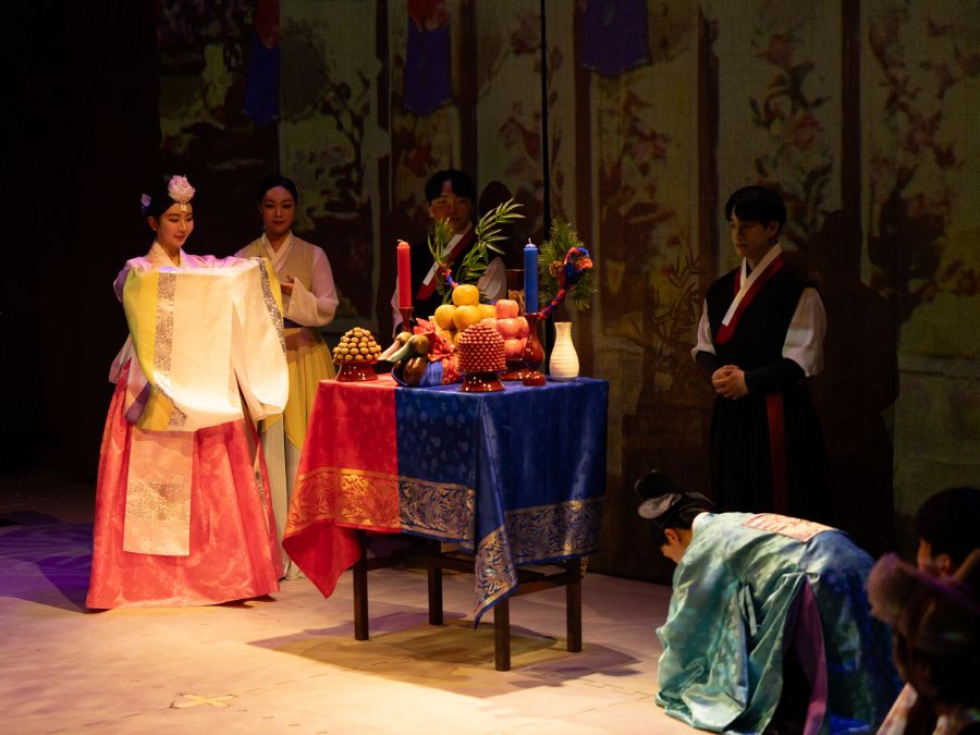 Dive into a dynamic performance that blends Taekwondo techniques, Samulnori, Korean dance, reenactments of traditional weddings, and cutting-edge media art.